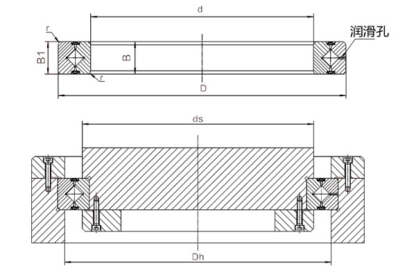 ![]() 徑向安裝的回轉(zhuǎn)支承軸承 |